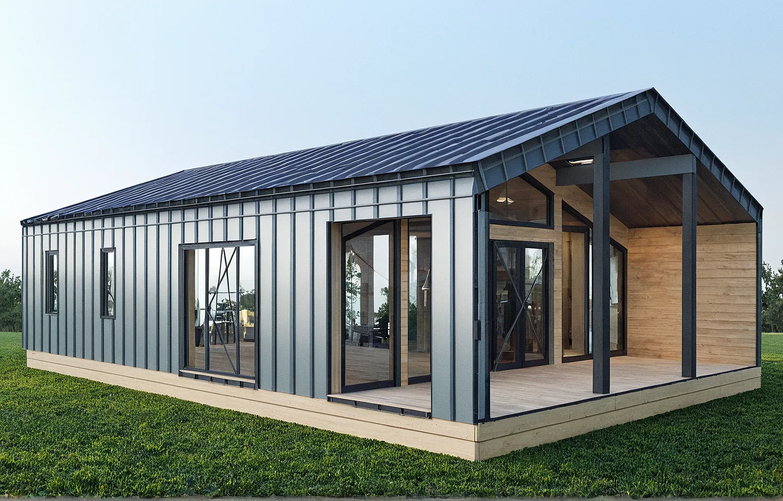 Строгие пропорции, сочетание дерева и металла в отделке фасадов, вне временный внешний вид — это стиль, который будет актуален всегда. Дом выглядит дорого и стильно.