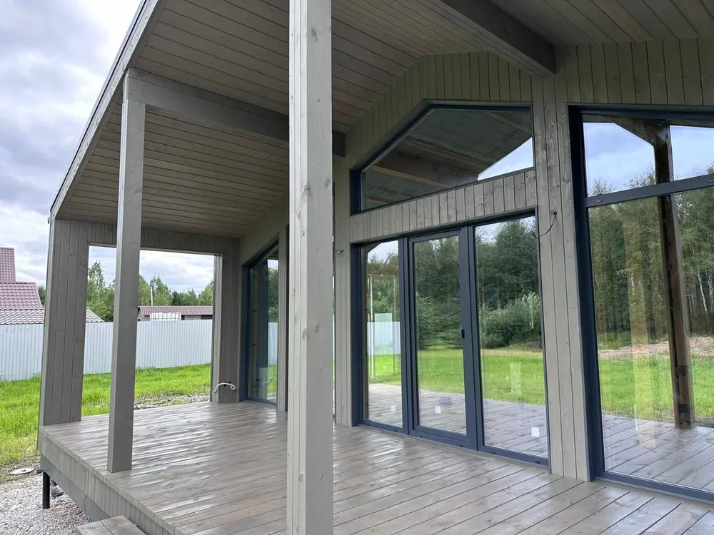 Много света и большая площадь остекления. Дом светлый и уютный.